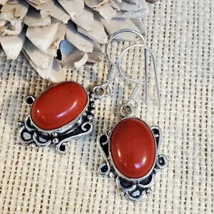 Delight in the beauty of these stunning oval stone earrings crafted by Indian artisans. These bohemian-inspired dangle/drop pieces feature a unique art nouveau scroll design that exudes elegance and sophistication. The earrings are made of 925 sterling silver and showcase a natural stone material that adds a touch of exotic flair.