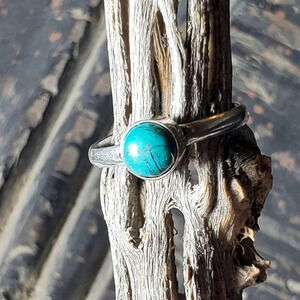 Artisan India Blue Turquoise 925 Sterling Silver Plated Gemstone Ring Size 8