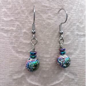 Hand crafted Iridescent Drop Earrings Electroplated Lava Stone Rainbow Hematite Beads