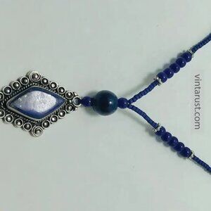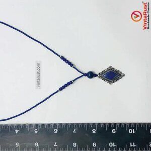 Artisan Lapis Lazuli Diamond Pendant Necklace, Ethnic Lapis Lazuli Pendant
