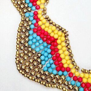 Artisan Made Colorful Statement Necklace Beaded Gold Tone Spring Summer Fun