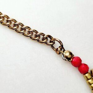 Artisan Made Colorful Statement Necklace Beaded Gold Tone Spring Summer Fun10.5" drop