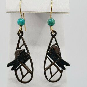 Artisan Made Dragonfly Earrings Drop Dangle Mixed Metals Native Style BOHO