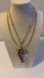 Artisan made one of a kind necklace featuring 3 layers of gold chains with a huge pendant consisting of cameos, crystals, glass beads and pearls.