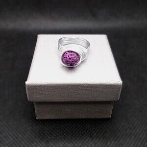 Artisan Made Purple Stone Ring Wire Wrapped Lava Rock Diffuser Essential Oil NEW