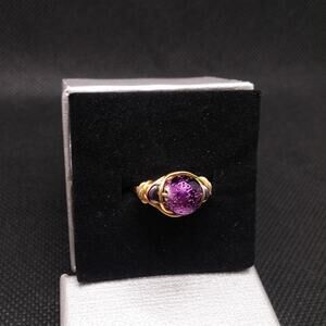 Artisan Made Triple Stone Ring Wire Wrap Purple Lava Rock Hematite Bead Diffuser