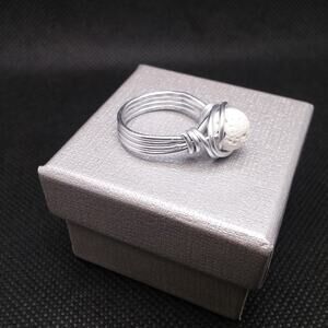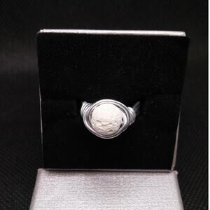Artisan Made White Stone Ring Wire Wrapped Lava Rock Diffuser Essential Oil NEW