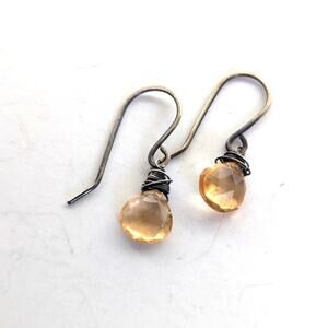 Artisan Made Wire Wrapped Citrine Glass Sterling Silver Hook Dangle Earrings
