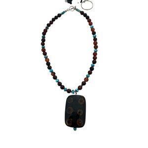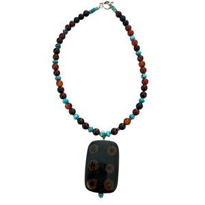 Artisan Made sterling Silver 925 Turqoise and agate w Pendant brown blue