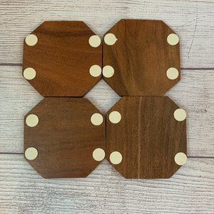 Artisan Market Bark Wood Hexagon Coasters with Honeycomb Pattern Set of 4