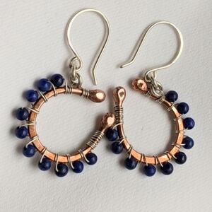 Artisan Mixed Metal Earrings Sterling Silver Copper Lapis Lazuli Gemstones