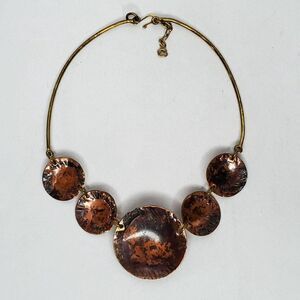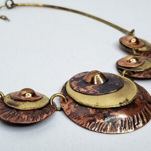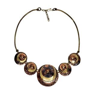 Artisan Modernist Copper Brass Necklace Round Layered Medallions Disks Statement