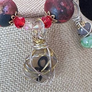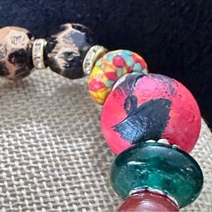 Hand Painted Wooden Beads Charms Crystal Handmade Bracelet OOAK Stackable 6-7 Wooden Beads Charms & Crystal Glass Handmade Bracelet 6-7 One Of A Kind