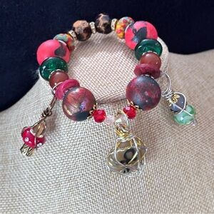Artisan Multicolor Hand Painted Beads Bracelet with Charms