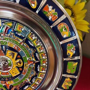 Vibrant Aztec calendar design. Features intricate patterns. Perfect for cultural decor.Purchased while on a mission trip in Mexico. Stunning plate.