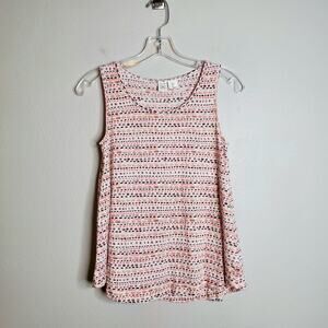 Artisan NY 100% Linen Patterned Tank Top Size S Earthy Neutral Sleeveless Boho