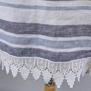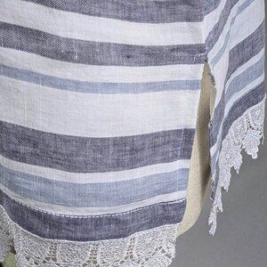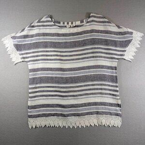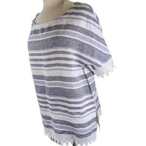 Artisan NY 100% Linen Pullover Top Womens Medium Gray Blue Striped Lace Trim