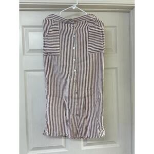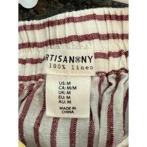 Artisan NY 100% Linen Skirt - Size M - Button Front - Red & Cream Stripe