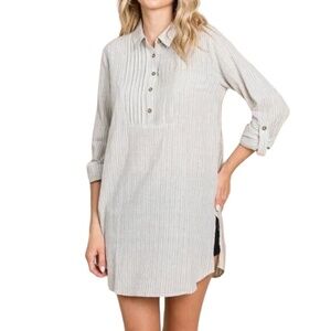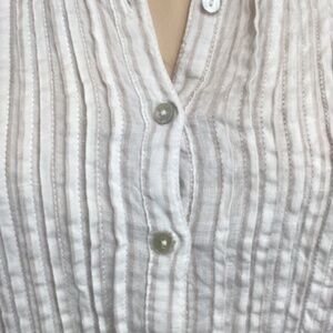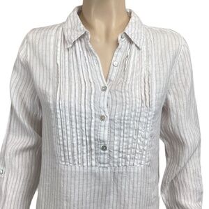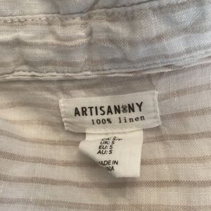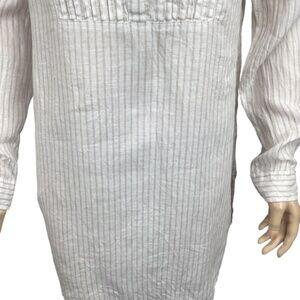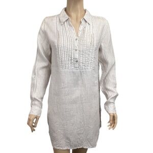 Artisan NY 100% Linen tunic top size small Long sleeve pintuck striped tan white