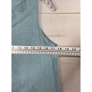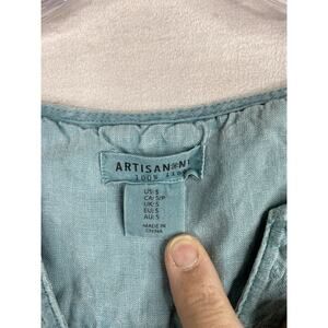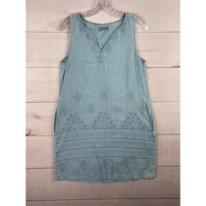 Artisan NY Dress S Blue Midi Slip 100% Linen Sleeveless Embroidered Pockets Boho