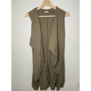 Artisan NY Green Collar Open Front Draped Waterfall Sweater Vest Sz M S530.