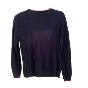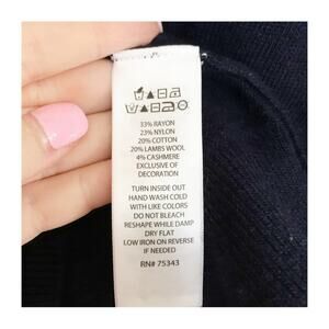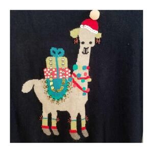 Navy long sleeve crewneck sweater with holiday intarsia llama embellished with beads, sequins and studs. 33% rayon/23% nylon/20% cotton/20% lambswool/4% cashmere. Super soft. Size Small. Excellent like new condition.