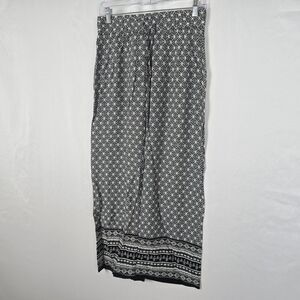 Artisan NY Pants Women's Small Black White Diamond Pattern Wide Leg Drawstring