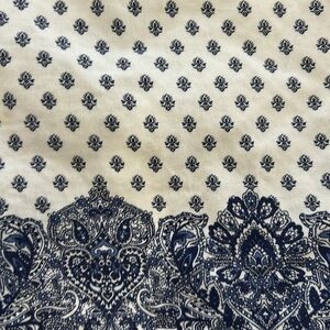 Elegant shorts with intricate navy patterns. Ideal for casual wear. 97% cotton 3% spandex machine washing cold water.