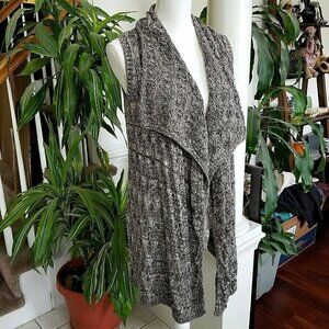 Artisan NY Size Small Sweater Vest Draped Large Collar Taupe Waterfall Comfy.