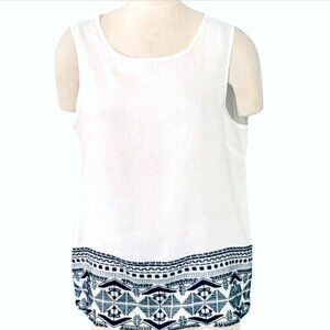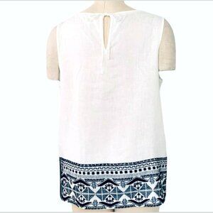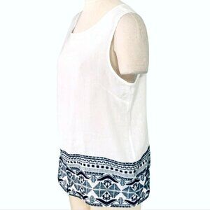 Artisan NY White Linen Sleeveless Tank Top Embroidered Tribal Border Sz L #1B