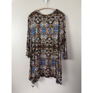 Artisan NY Women 3X Fleur De Lis Tunic Top Boho Mandala Print Asymmetrical Drape