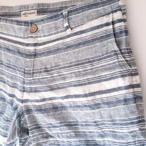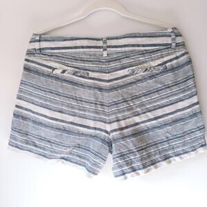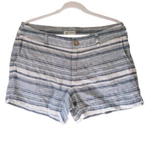 Artisan NY Womens Size 10 Blue and White Striped Shorts in 100% Linen with Lace Detail