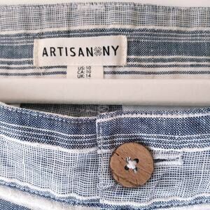 Artisan NY Womens 10 100% Linen Shorts Blue Stripe Lace Coastal Beachy Vacation