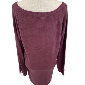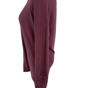Artisan NY Womens Burgundy Waffle Knit Tunic With Crochet Sleeve Accents size XL