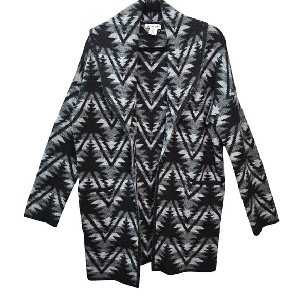 Artisan NY Wool Cardigan Womens Small Grey Black South Western Aztec Equestrian
