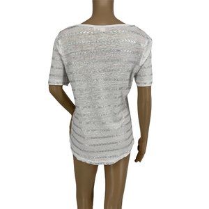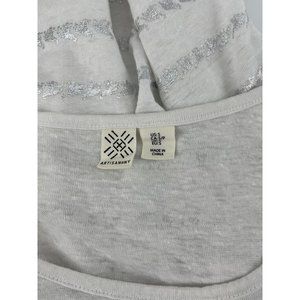 Artisan NY hi lo linen top small white silver elephants short sleeve