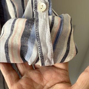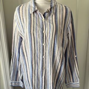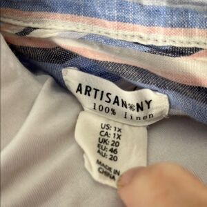 Artisan NY Linen Striped Blue & White Loose Fit Button Down / Mini Dress SZ 1X
