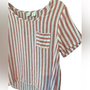 Artisan NY Sz M Red Striped Relaxed Short Sleeve Linen Flowy Summer Blouse