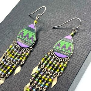 Artisan Native Dangle Fringe Earrings Silver Purple 3.5"