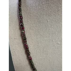 Artisan Natural Stone Beaded Necklace: Ruby in Zoisite & Heart Toggle
