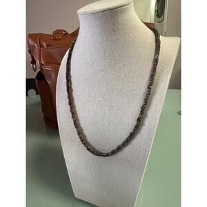 This elegant and earthy necklace features beautiful, genuine semi-precious stone beads with a striking mix of colors. Handcrafted with a charming, decorative clasp, this piece is a wonderful example of natural artisan jewelry.