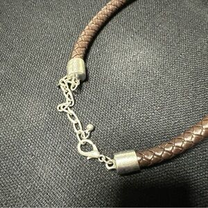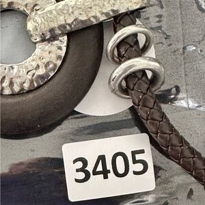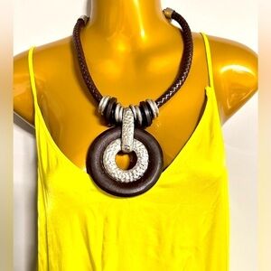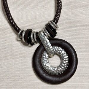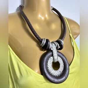 Artisan Necklace Brutalist Statement Brown Wood Ring Silver Tone Braided 3405 W
