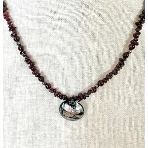 Artisan Necklace Translucent Natural Stone Chips Red Shades Dichroic Pendant Vtg