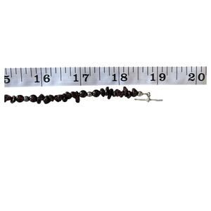 I believe these stone chips are garnet but this is unconfirmed. The translucence when light shines through the chips is beautiful with red and some purple hues visible.