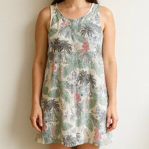 Artisan New York Linen Shift Tropical Leaf Frond Beach Dress Medium
