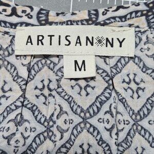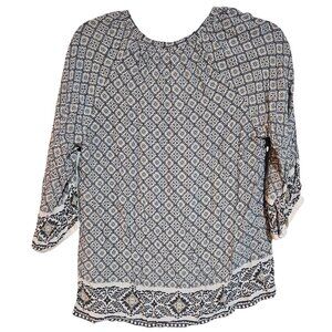 Artisan Ny Womens 3/4 Sleeve Boho Printed Blouse M 100% Rayon Blue & White