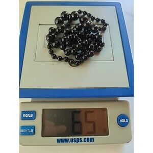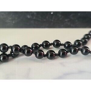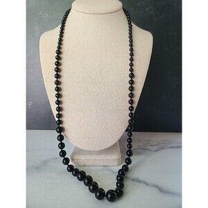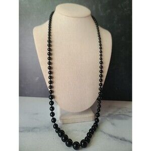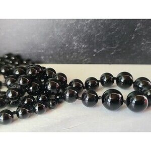 This is a vintage artisan onyx graduated ball bead necklace.