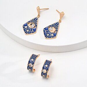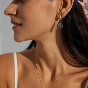 🧿 Artisan Original Design Blue Enamel Evil Eye Dangle Earrings | S925