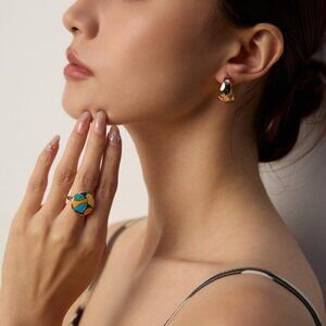 🎨 Artisan Original Design Colorful Mosaic Enamel Disc Ring | Adjustable S925