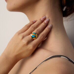 An Artisan Original & Handcrafted Piece: A unique studio design, this ring showcases masterful craftsmanship in its intricate, multi-color enamel work, a process similar to traditional cloisonné.
